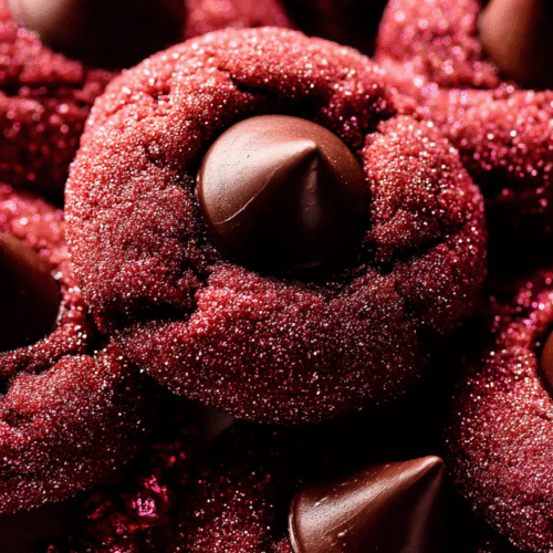 These festive Red Velvet Kiss Cookies feature a vibrant red velvet dough, coated in sugar, and topped with a creamy Hershey’s Kiss. Perfect for holidays or any special occasion, they are soft, chewy, and irresistibly delicious.